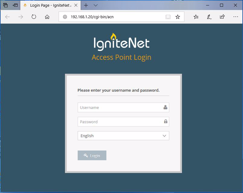In a web browser, enter the access point default management IP address of 192.168.2.1 to access the login page: