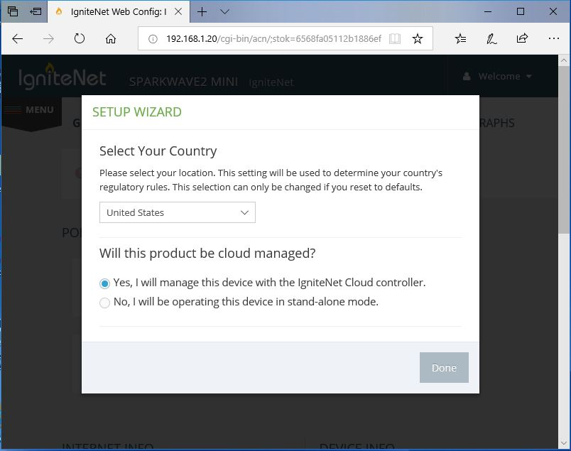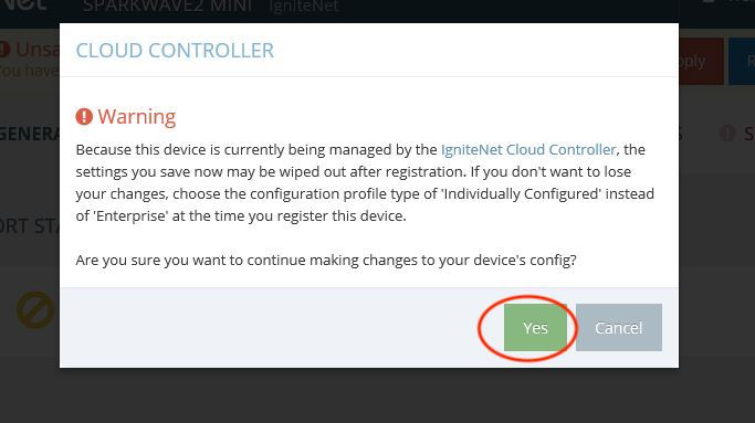 Ensure also that you select that the device will be managed with the IgniteNet Cloud controller.
